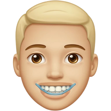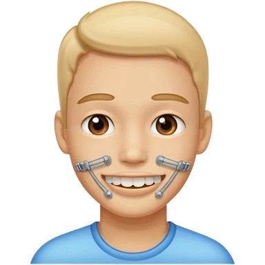 smiling face with braces on its teeth, friendly and expressive, simple, colorful emoji