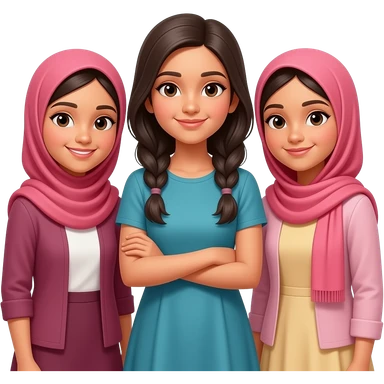 group of 3 girls one veiled, one brunette, one Indian emoji