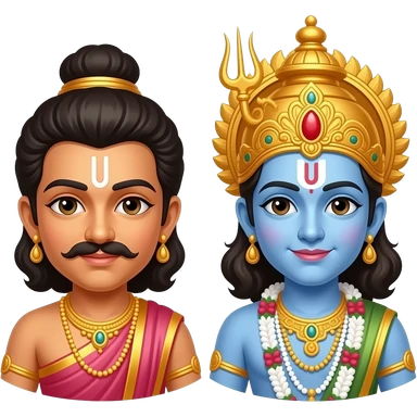 Radha and Krishna emoji, sitting together, Krishna playing flute, Radha listening, traditional Indian clothing emoji