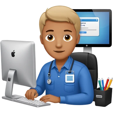 Indian guy with glasses working on macbook laptop on a desk emoji