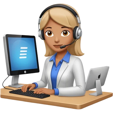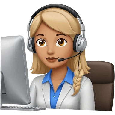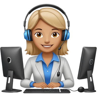 lightly brown indian call center girl with dark brown medium curly hair smiling and wearing a headset while working on a laptop from a quarter angle emoji