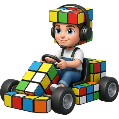 A kid riding on a rubik s cube as the go kart emoji