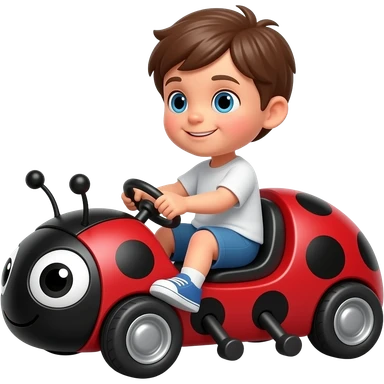 A kid riding on a ladybug as the go kart emoji