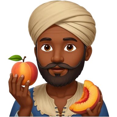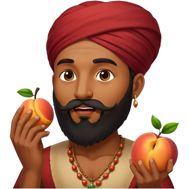 Indian man with a long beard licking a peach emoji | AI Emoji Generator