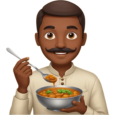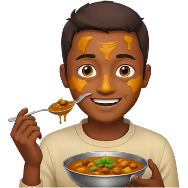 Brown Indian man with a turban eating a bowl of curry flying a plane emoji