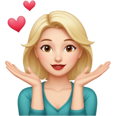 A beautiful nonchalant woman with her hands in surrender while she smirks and gives a flying kiss emoji