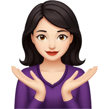 A beautiful nonchalant woman with her hands in surrender while she smirks cunningly emoji
