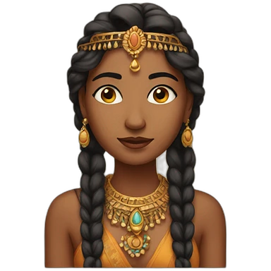 A girl with curly hairs. Skin tone is indian. Wearing a gown. Looking like a queen emoji