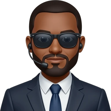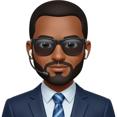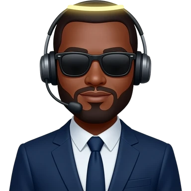 brown skin Tech support boss with goate beard with sunglass ear buds emoji