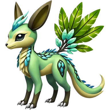 Exotic Tropical Feathery Leathery Scaly Planty Meloetta-Zygarde-Zeraora-Renamon-Protogen-Palkia-hybrid-fusion-Fakémon-creature, full body emoji