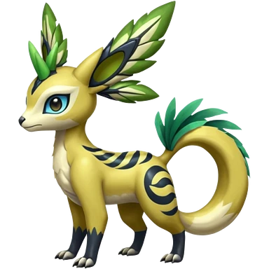 Exotic Ivy Feathery Meloetta-Zygarde-Zeraora-Renamon-Protogen-Palkia-hybrid-fusion-Fakémon-creature, full body emoji