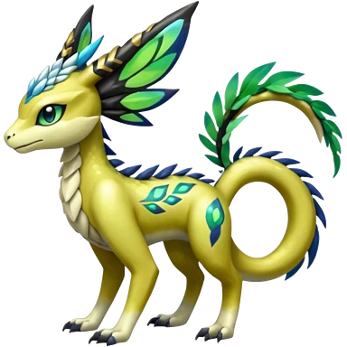 Exotic Dragonic Feathery ScalyMeloetta-Zygarde-Zeraora-Renamon-Protogen-Palkia-hybrid-fusion-Fakémon-creature, full body emoji