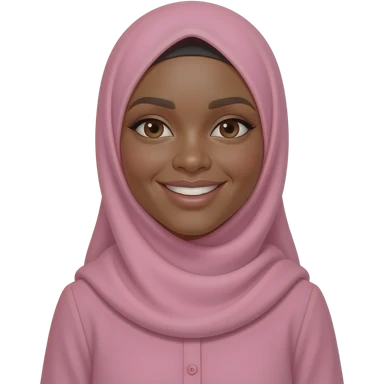 Indigenous, Muslim woman, black skin, wearing a ,Nation Of Islam styled Head scarf, i( this style is very specific it has no wrap around the neck) in Bubble gum pink, she is wearing a modest blouse with a mandarin collar buttoned up she has a soft delightful smile emoji | AI Emoji Generator