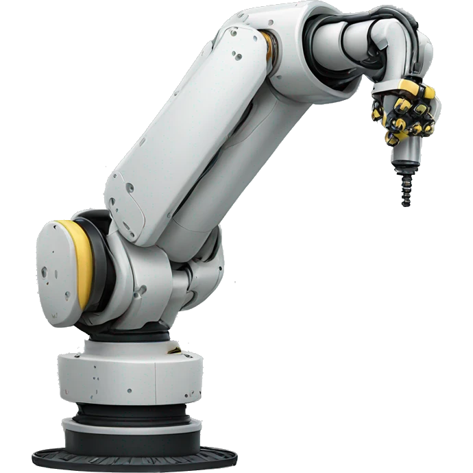 Industrial robot with exposed wiring and heavy metal plating emoji