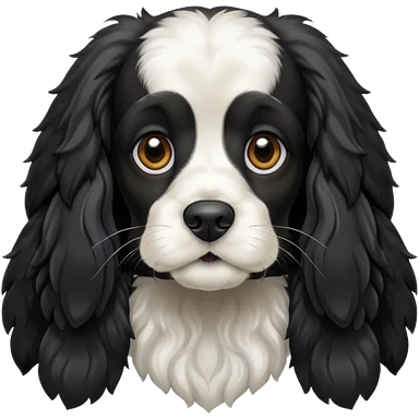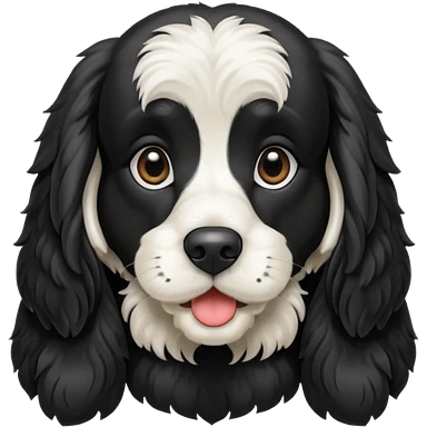 Собака породы черно-белый русский кокер спаниель с грилзами emoji