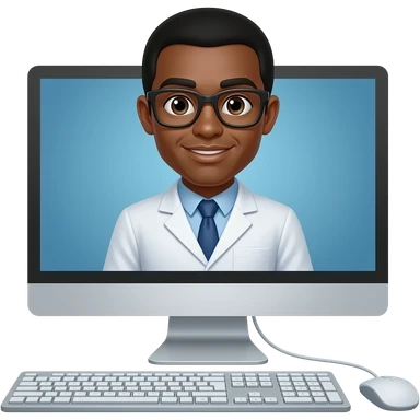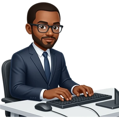 informaticien noir devant ordinatzeur avec (ecran, clavier, souris) emoji