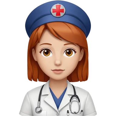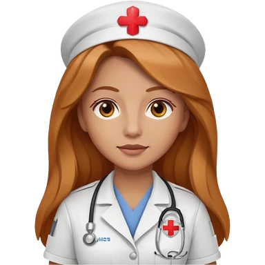 nurse with long dark strawberry blonde hair with brown eyes emoji