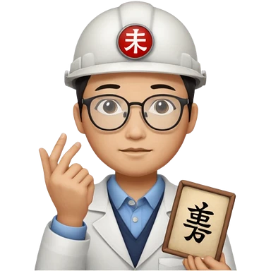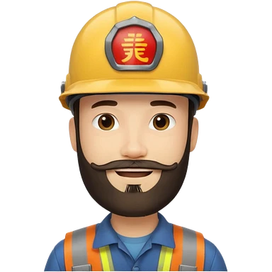 Ingeniero con barba y con casco y letra china minipeka emoji | AI Emoji Generator