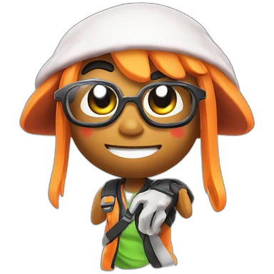 inkling from splatoon with earsphone and green hair and inkgun emoji