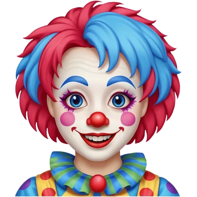 Clown – Bright makeup, red nose, colorful wig, exaggerated smile emoji