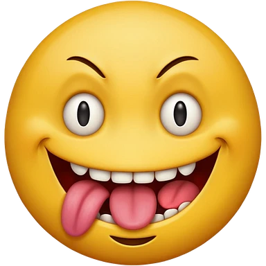 Insane smiley face who’s greedy and has beady tired eyes evil with tongue out emoji