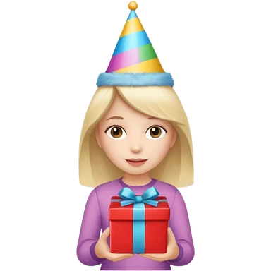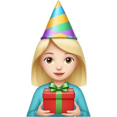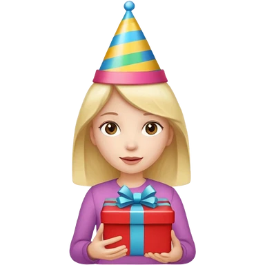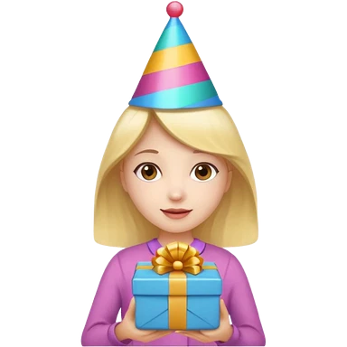 🥳🎀 kafasında tok olan elinde hediye olan bir kız emoji