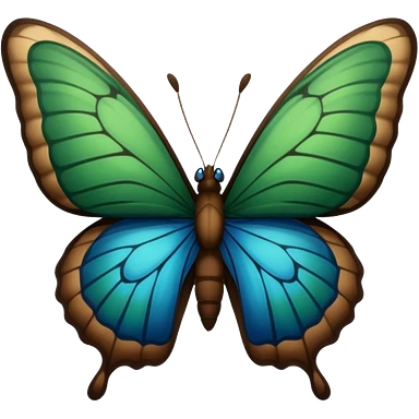 A butterfly with blue edges, green wings, and a black body, Between the wings brown emoji