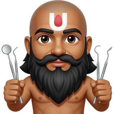 Maharaha face holding dentist instruments, white and black beard, bald, light brown skin emoji