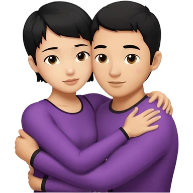 buff Asian Man black hair hugging girl with black pixie cut emoji