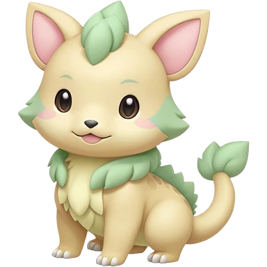 Pastel yellow beige and pastel greens and pinks rosy blushing cute kawaii Inteleon-Pokémon-Amaura-fusion (full body) emoji