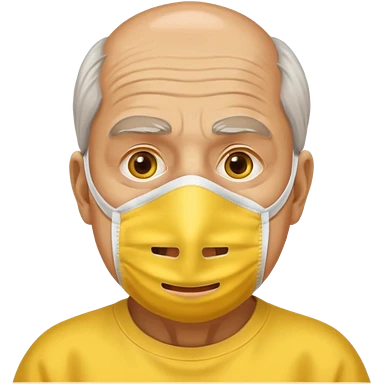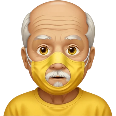 old man with beauty face pack give me a yellow face mask on his face emoji