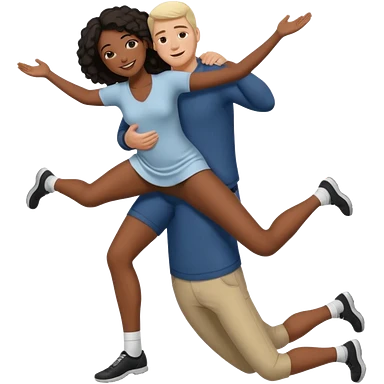 interracial couple where white man is holding black woman off the ground arms supporting her back and under her knees emoji