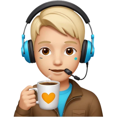 Gaming character drinking coffee - with vibrant colors emoji