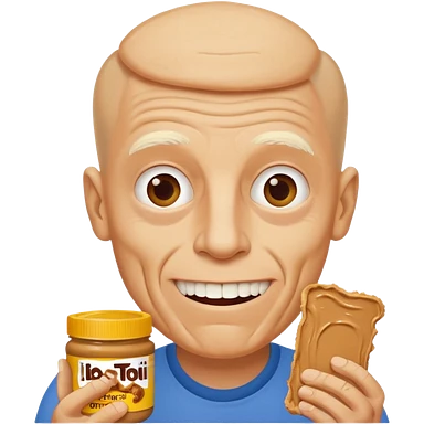 White man, barely any hair, lots and lots of wrinkles, bad yellow teeth, and peanut butter emoji
