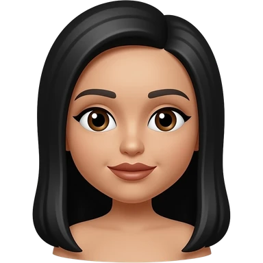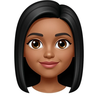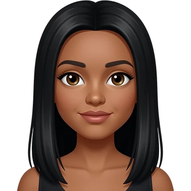 Ios 18 style emoji for girl with long black straight hair, medium brown skin, big almond eyes, full lips emoji