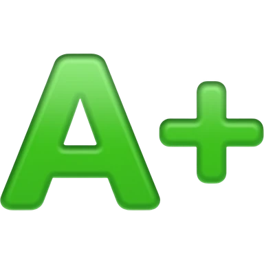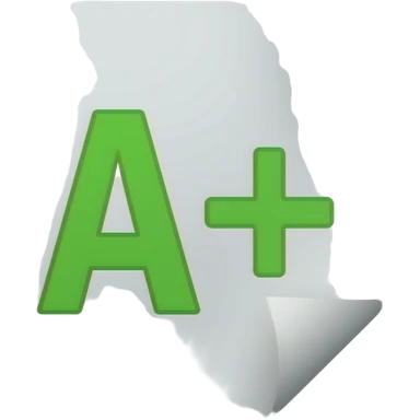 iOS emoji style, glossy 3D emoji, a homework sheet, clean white paper with "A+" grade in bright green, soft rounded shapes, vibrant colors, subtle shadows, Apple emoji design style, minimalistic, high detail, smooth shading, centered composition, no background emoji | AI Emoji Generator