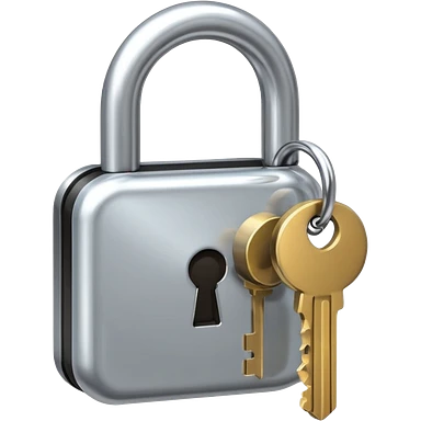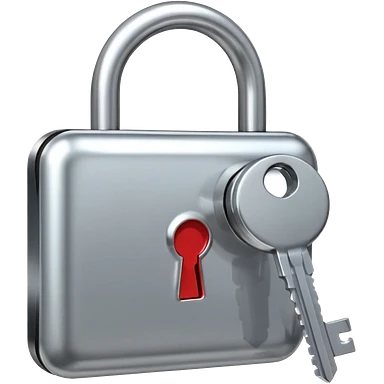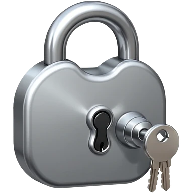 A chrome silver lock and key emoji, smooth metallic surfaces, glossy reflections, luxury swag vibe, minimal iOS emoji style, centered on clean white background emoji