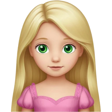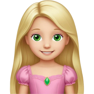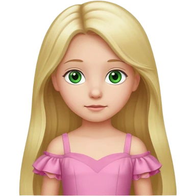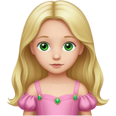 a 5 year old girl with long blond hair green eyes wearing a pink gown emoji
