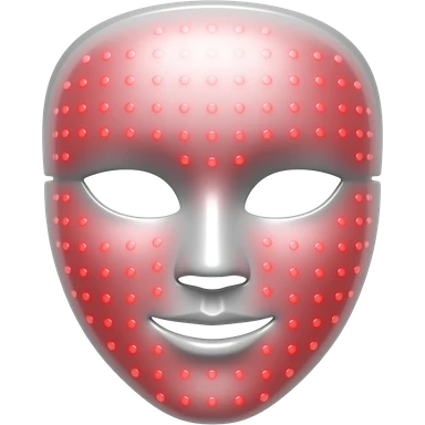 iPhone emoji style illustration of a futuristic LED red light therapy face mask, glowing red light dots evenly distributed, sleek and modern design, symmetrical face shape, soft glow aura, glossy 3D finish, high detail, centered, isolated on pure white background, no text emoji