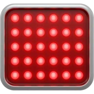 iPhone emoji style illustration of a red light therapy panel device, rectangular shape with multiple glowing red LED lights, emitting soft radiant glow, modern medical aesthetic, glossy 3D emoji style, clean and minimal, centered composition, isolated on pure white background, no text emoji