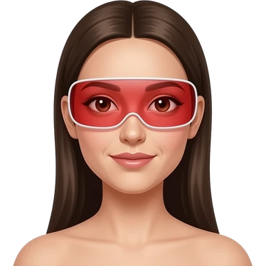iPhone emoji style illustration of a relaxed woman receiving red light therapy, soft facial expression, smooth skin, minimalistic, glossy 3D emoji style, soft shadows, high detail, centered composition, isolated on pure white background, no text emoji