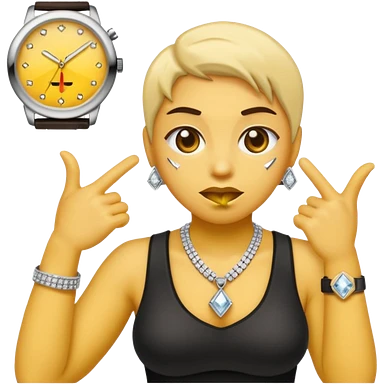 iPhone style emoji with yellow skin doing the bust down meme (diamond grill and watch) emoji