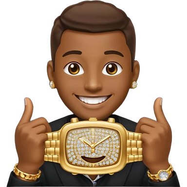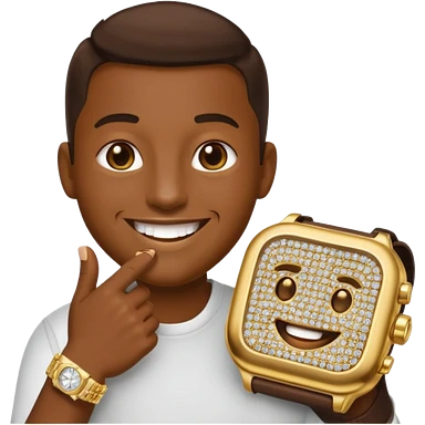 iPhone style emoji showing off his diamond encrusted grill and watch emoji