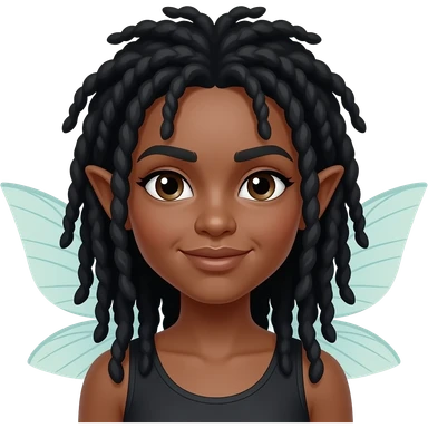 Androgynous brown boy with long dreadlocs in a side part being flirty emoji