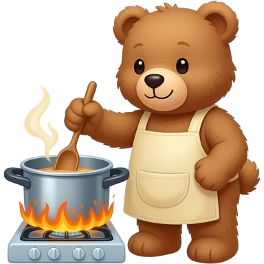 a teddy bear working with a warm pot on a stove emoji