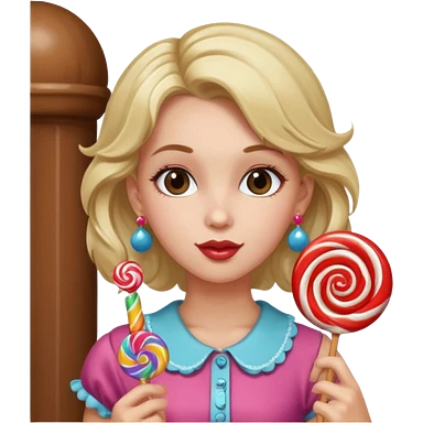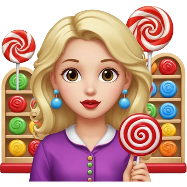 very pretty candy shop girl face with lollipop hair emoji