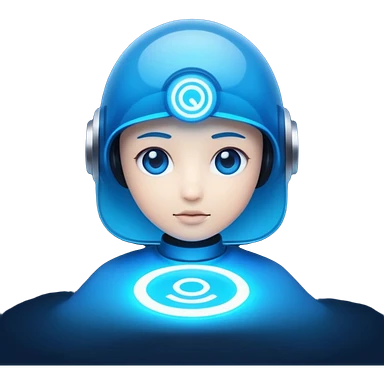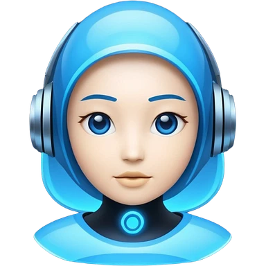 Modern 3D AI emoji, digital brain with subtle tech icons, neutral intelligent expression, blue and purple colors, clean educational style, soft lighting, transparent background. emoji