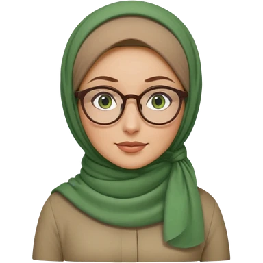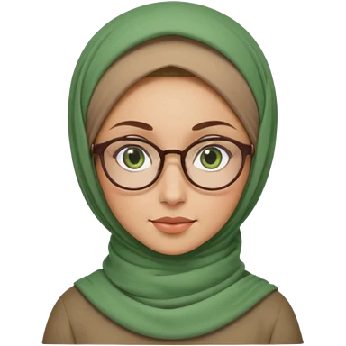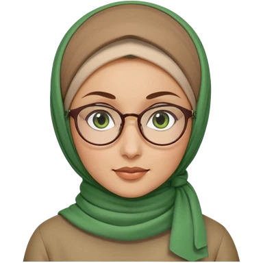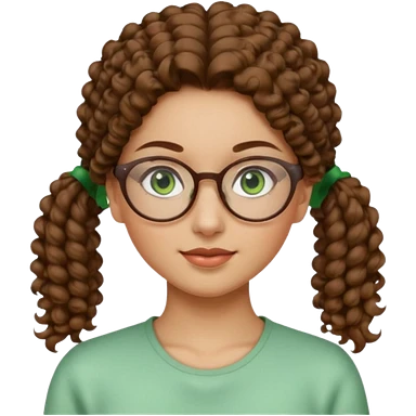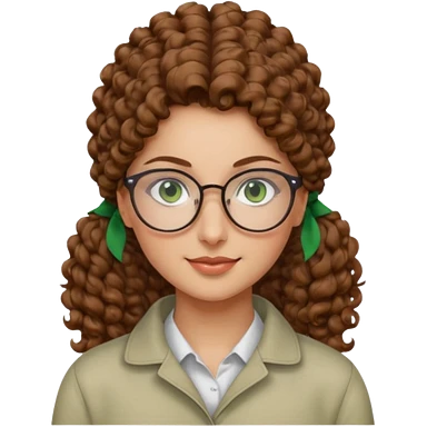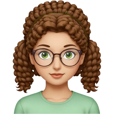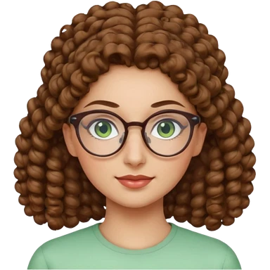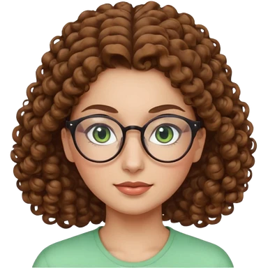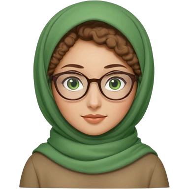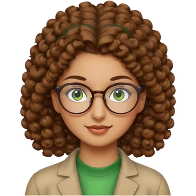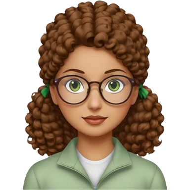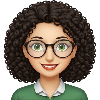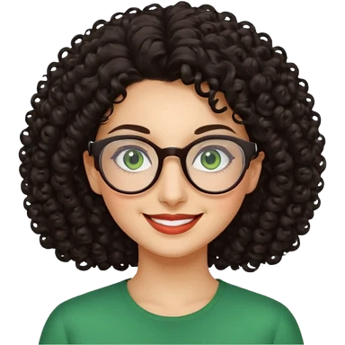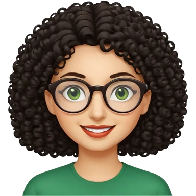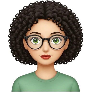 iranian woman, tight curly hair, glasses, green eyes, pretty, oval shape face emoji