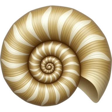 iridescent ammonite shell with red squid tentacles pointing left from the outside left. The entire shell is a spiral, and the last large opening is where the animal emerges -- not the center. emoji