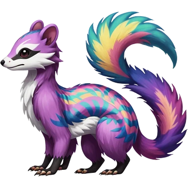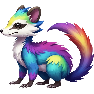 Colorful diaphanous Trico-Wickerbeast-Sergal-Skunk-Ferret-Furret-Marsupial-Vernid-fusion-Fakemon-animal-hybrid-creature, full body emoji